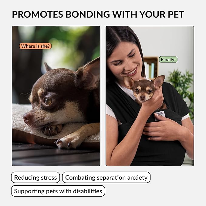 - REDUCES ANXIETY: This dog sling carrier can promote bonding with your pet and help reduce anxiety. You can use the puppy carrier during stressful events, like during fireworks or thunderstorms.