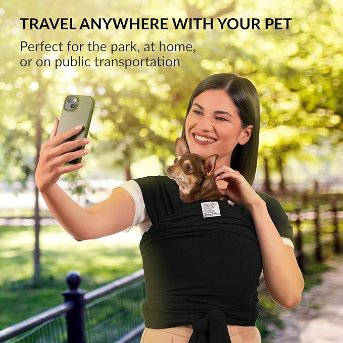 Dog Sling Carrier for Small Dogs - Anti-Anxiety Cat Sling, Puppy Pouch - Pet Sling in Gray Black Blue Green Pink Yellow (Black, Large)