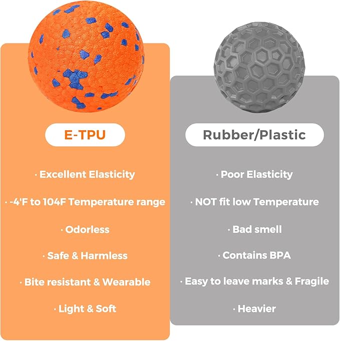 - Sturdy Materials - The dog chew toy is made of new E-TPU material rubber, it's a sturdy and light weight dog chew toy balls for aggressive chewers yet soft on dogs' mouth and safe on teeth.