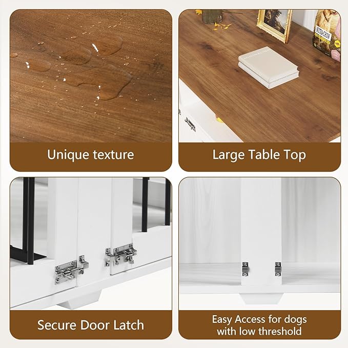 - [Storage Shelf Design] This 2 dog crate seamlessly fits various home decors. Its wide desktop and open storage shelves easily organize your pup's treats and toys, keeping pet items tidy