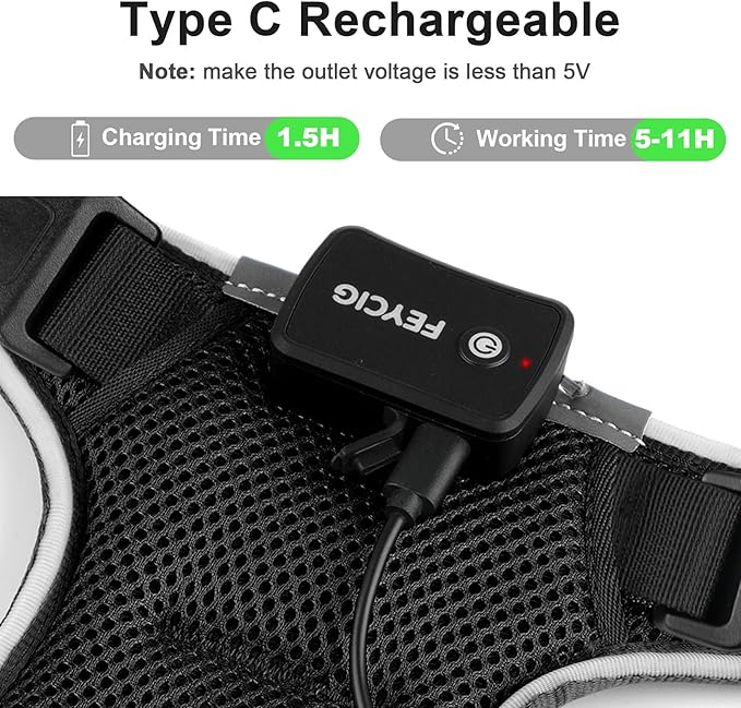- Type-C RECHARGEABLE:The 250mAH lithium battery holds up to 5-11 hours on fast/slow/constant glowing mode .The flashing light make your puppy stand out with this lighted dog harness!if you have any problem,please contact us.