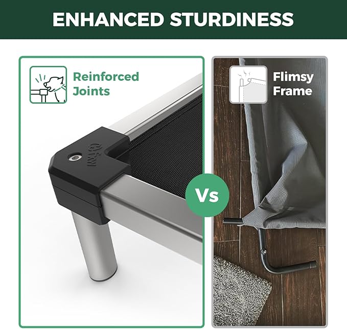 - Indestructible & Dog-Safe: Crafted with a premium aluminum alloy frame and chew-proof edges, this bed withstands aggressive chewers while keeping your pupโs gums safe and happy.
