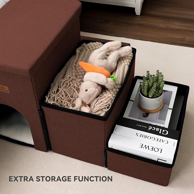 - 3-IN-1 DOG STAIRS AND CONDO: Zerbuger pet stairs not only provide a stable and cozy place for your pet to rest, but also serve as a convenient 54QT large storage area for your pet's clothes, toys, or any other supplies. Our pet steps are covered with removable lids, Every steps are designed as storage boxes.