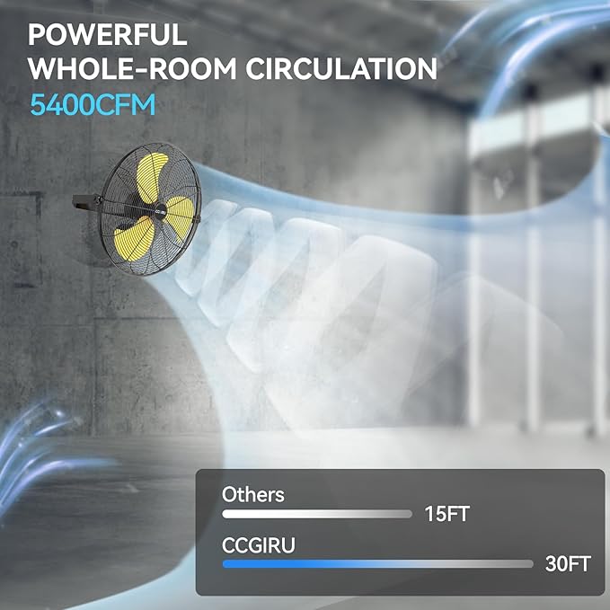 - 180ยฐ Tilt Airflow Control: Achieve the better cooling with this wall mounted fan's 180ยฐ vertical tilt feature, allowing you to direct the airflow precisely where it's needed. You can enjoy the versatile air circulation for all-season comfort