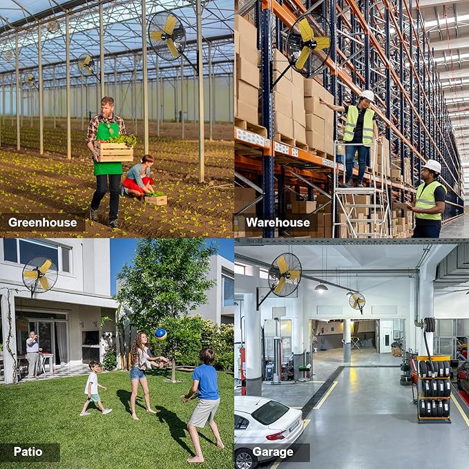 - Waterproof Outdoor Fan: UL listed, outdoor grade. Designed with sealed and enclosed motor, IP44 waterproof, GFCI plug, and thermal overload protection, great for high humidity, dust, debris even raining conditions like warehouse, industrial, garage, and greenhouse