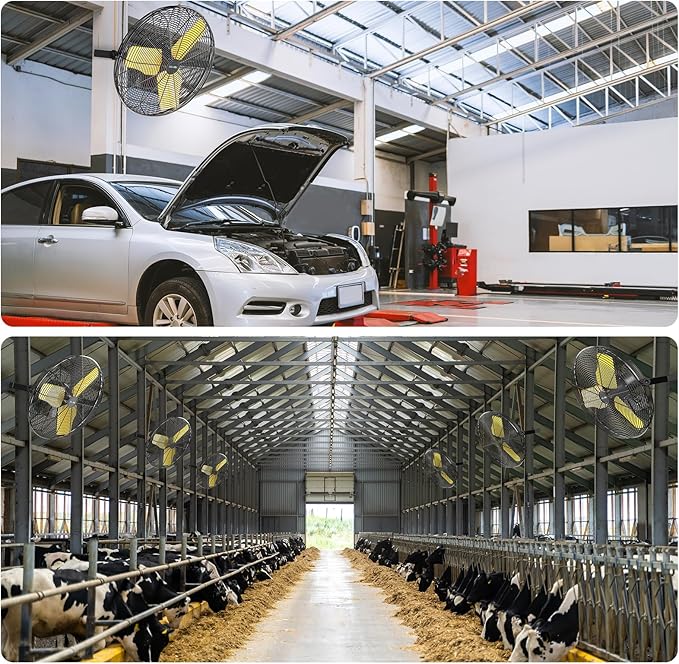 - 2 Speeds Airflow: Upgraded the motor on the original basis, making the 24-inch wall mounted fan indoor more powerful than before. High velocity industrial fan runs at 9200 CFM with pull chain in high speed, low 7400 CFM. This is an industrial wall mounted fan, the noise is louder than home fans