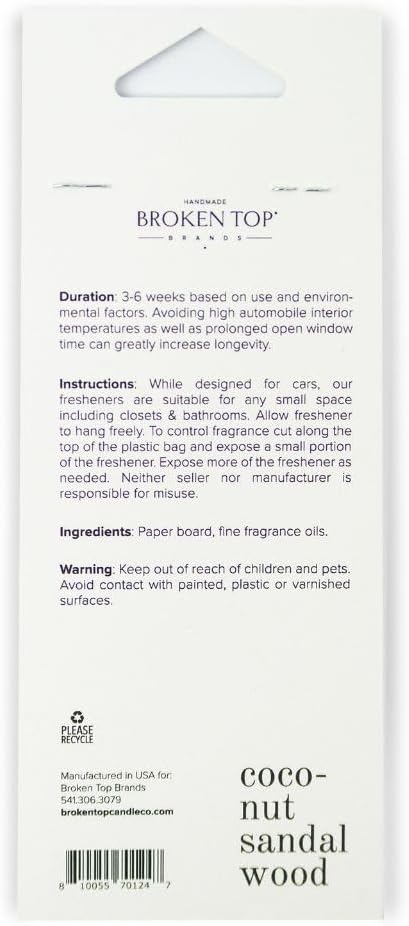 Coconut Sandalwood Car Air Freshener - 4 Pack
