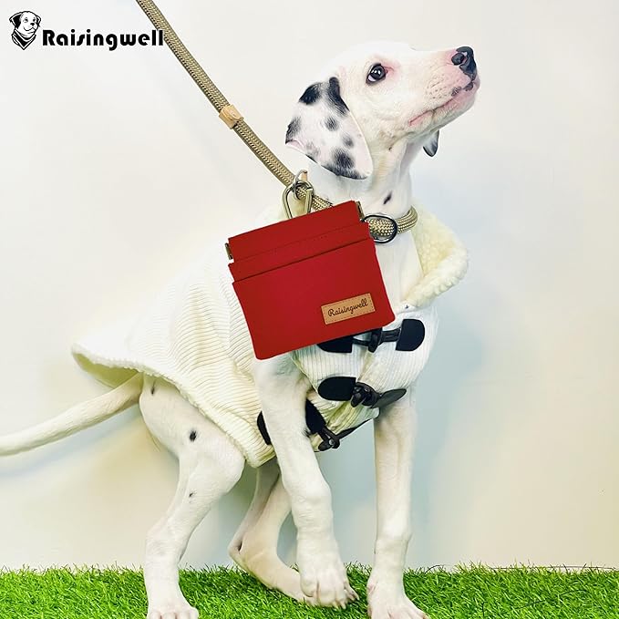 - Durable Material: Raisingwell's dog treat training pouch is crafted from durable, washable, non-toxic vegan fabric, made of pure cotton. In particular, the waterproof lining addresses the issue of difficult cleaning inside the training pouch.