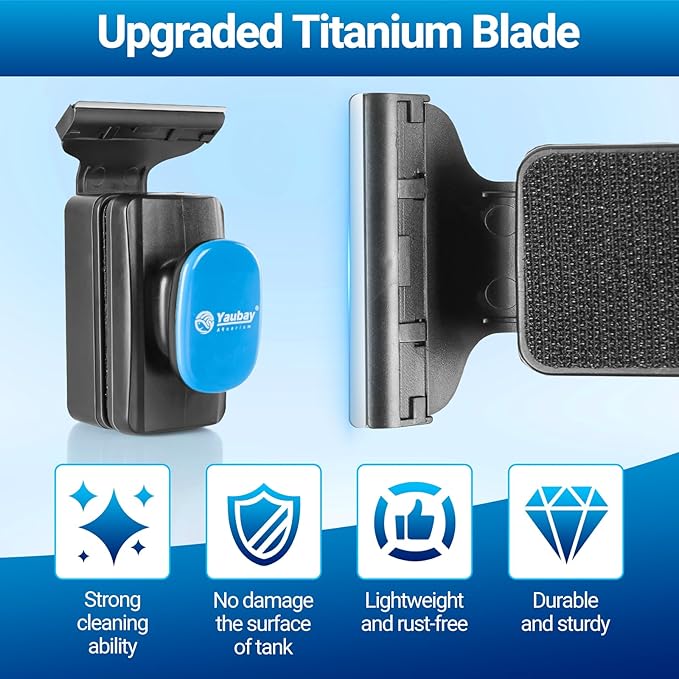 - Versatile Detachable Blade: Our aquarium glass cleaner is equipped with titanium blades, catering to various types of tanks. designed to scrape off tough algae and mineral deposits on glass/acrylic aquariums, maintaining the pristine appearance of your fish tank and enabling clearer observation of their every move