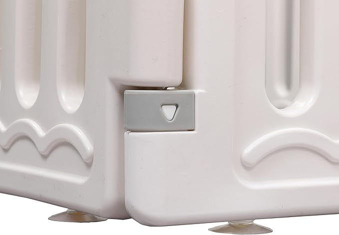 - DIMENSIONS AND MATERIALS: Standing at 25.6 inches high, the playpen is made of strong, durable plastic. The 8-panel design offers ample space for pets to play, while the neutral white color blends seamlessly with any home dรฉcor. Ideal for small pets.