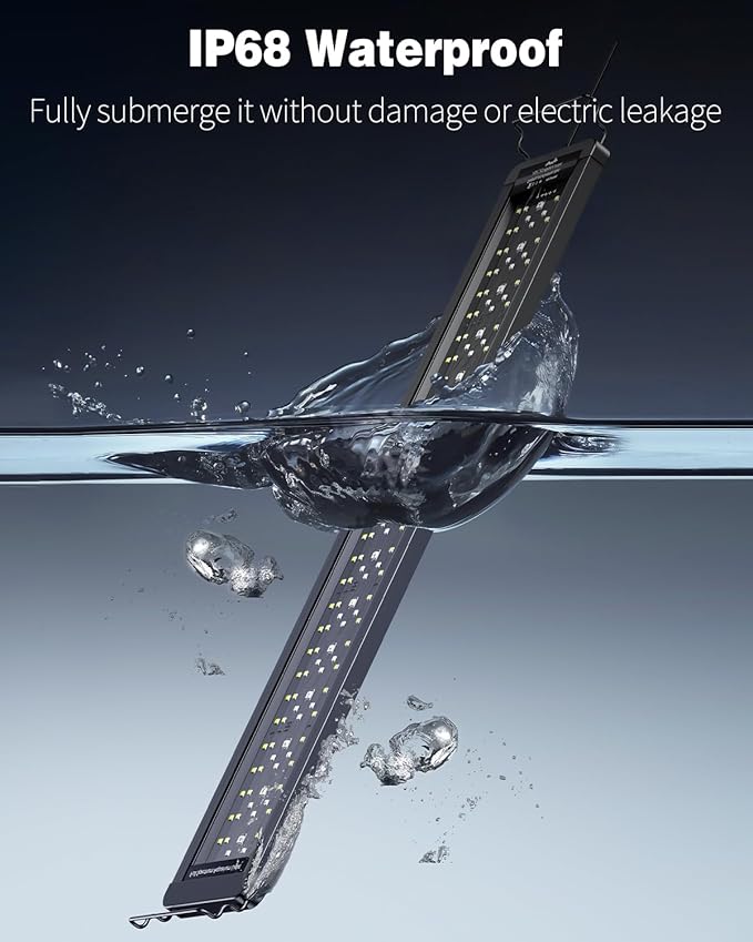 - 24/7 Natural Mode: The LED light automatically starts at 6 a.m. and turns off at 10 p.m. Simulate the natural changes from sunrise, sunset to moonlight throughout the day, greatly energizing your fish and giving them a sound sleep