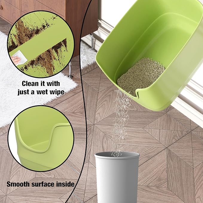 - No Gaps: One-piece molded construction requires no assembly, simple and no gaps, cat litter won't leakage or get stuck in the crevices, say goodbye to annoying cleaning problems๏ผmaking cleaning easier.