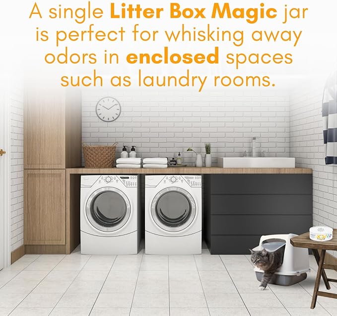 - MAXIMUM STRENGTH & LONG-LASTING โ 30 DAYS ODOR FREE! Our cat box deodorizer pro-grade strength formula delivers powerful litter box odor control for 30 days, even in multi-cat households. Twist open the cat litter scent deodorizer jar and let it go to workโperfect for bathrooms, closets, enclosed basements, and small, poorly ventilated areas. With its continuous odor-fighting power, enjoy 30 days of effective odor elimination. Let our product keep your home smelling clean and Odor-free!