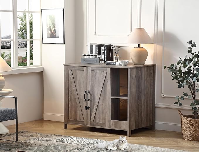 Cat Litter Robot Enclosure,Large Space for Placing Litter Robot 3/4,Power Outlet and Dog-Proof Shelf for Litter Robot Cabinet,Litter Collector for Automatic Litter Box Enclosure,Grey
