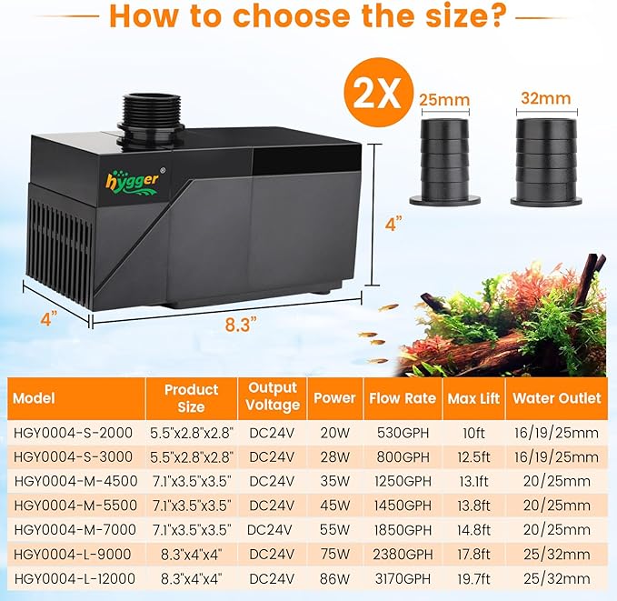 - Complete Accessories and Reliable: The 75W aquarium pump comes with the accessories you need. The set includes 1x Water pump. 1x Controller, 2x Water outlet connector(25/32mm),1x Adhesive and 1x User manual. We provide a 24-month-warranty. If there is any problem with our product, please contact us, We are happy to help you.