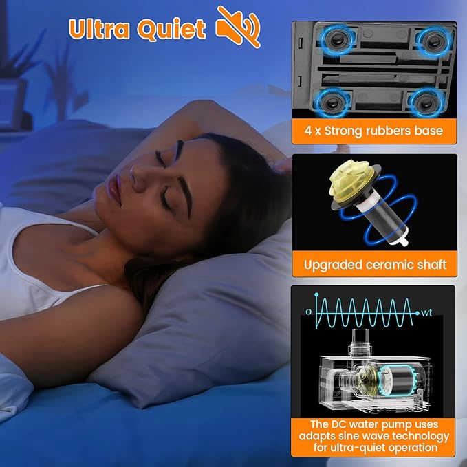 - Security Upgrade and Ultra Quiet: The Aquarium Water Pump is designed with Field Oriented Control system (FOC) that is efficient performance, energy-saving and ultra-quiet operation.The control system with an lC chip, the pump is protected against undervoltage.overvoltage,overcurrent, dry running, and motor blockage.