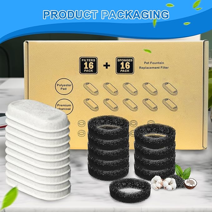 - Value Packr:16 cat fountain replacement filters and 16 pre-filter sponges are included in the package.