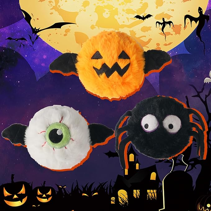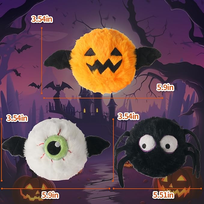 DKING 3Pack Squeaky Dog Balls,2 in1 Funny Puppy Ball Toys,Birthday Dog Toy for Small Medium Dogs (Halloween Ball)