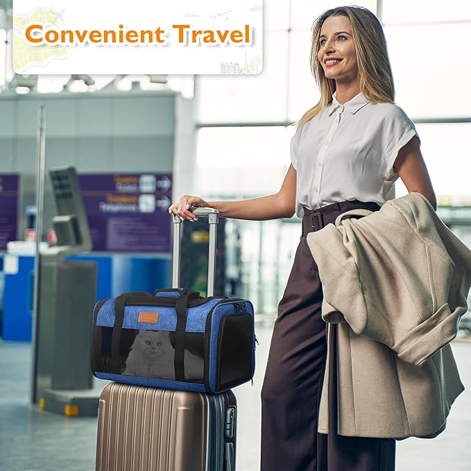 PETUX TSA Approved Pet Carrier in Cabin, 17"x11"x9.5" Soft Cat Carriers for Small Cat up to 12 lb and Puppy up to 10 lb, Top Open Portable Pet Carrier Airline Approved for Travel and Vet Visit (Blue)