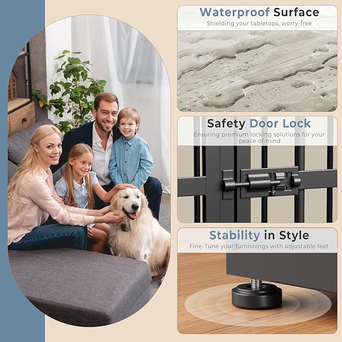 - 【Multifunctional Dog Crate】 This large dog kennel furniture can provide a comfortable haven for your dog, as a side table to save space; You can easily place decorations or items on the top