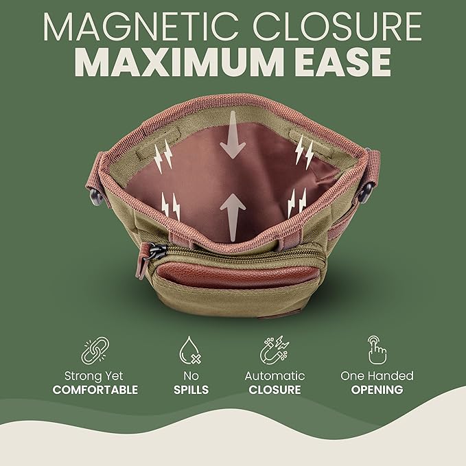 - 【EFFORTLESS ONE-HANDED ACCESS】 - The magnetic closure of this puppy treat pouch ensures fast access to treats, allowing you to reward your dog effortlessly during training sessions or walks without breaking the flow.