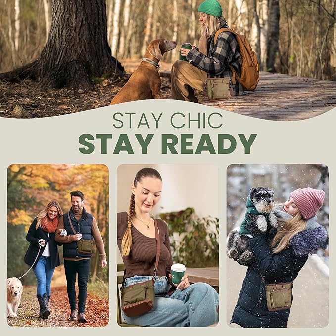 - 【ALL-IN-ONE STORAGE】 - With ample space and an expandable pocket, this dog walking bag holds treats, training tools, and poop bag rolls, easily holding your phone, keys, wallet, tennis ball, and documents, making it a great companion for long walks or outdoor adventures.