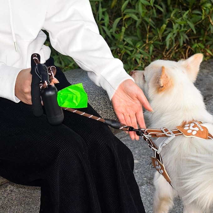 - A plastic portable bag holder with leash clip is a bonus for your convenience. It is easy to pull out a poop bag from the roll through the dispenser.