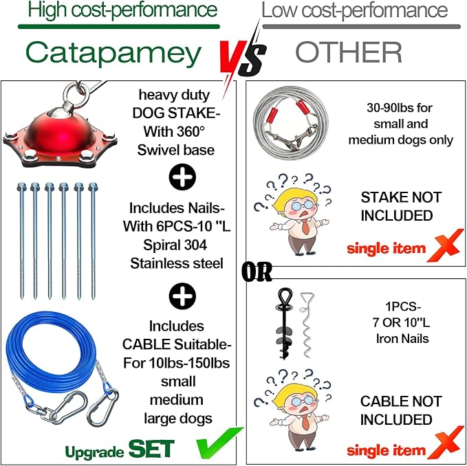 - TRUSTWORTHY:dog tie out stake is made of space aluminum alloy and 304 stainless steel,Designed with a Full 360° Swivel Ball,let’s your dog freedom to roam without tangledog stakes for outside sturdy and Rust Resistant durable,Stand up to S to XL Dogs up to 200 LBS and has been tested on a stable ground.You can even keep multiple pets at the same time and continue to stay tangled-free.dog stake Rotating base ring makes it easy to connect your other chain or leash