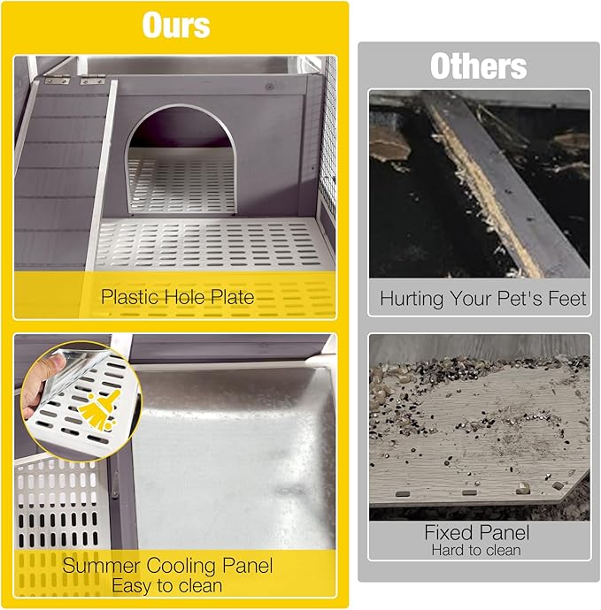 - Easy to Clean: The front and back pull-out deepening trays (with tray lock) and the openable roof also make it more convenient for you to clean the interior easily. Wire mesh that keeps pets from stepping directly on feces