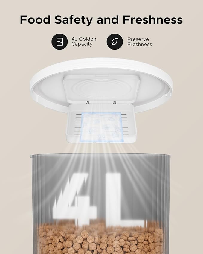 - Freshness Preservation: The cat feeders automatic cat food is with desiccant pouch and closed pet food outlet. With the advanced pet food preservation system, you can rest assured knowing that your furry friend gets every kibble fresh