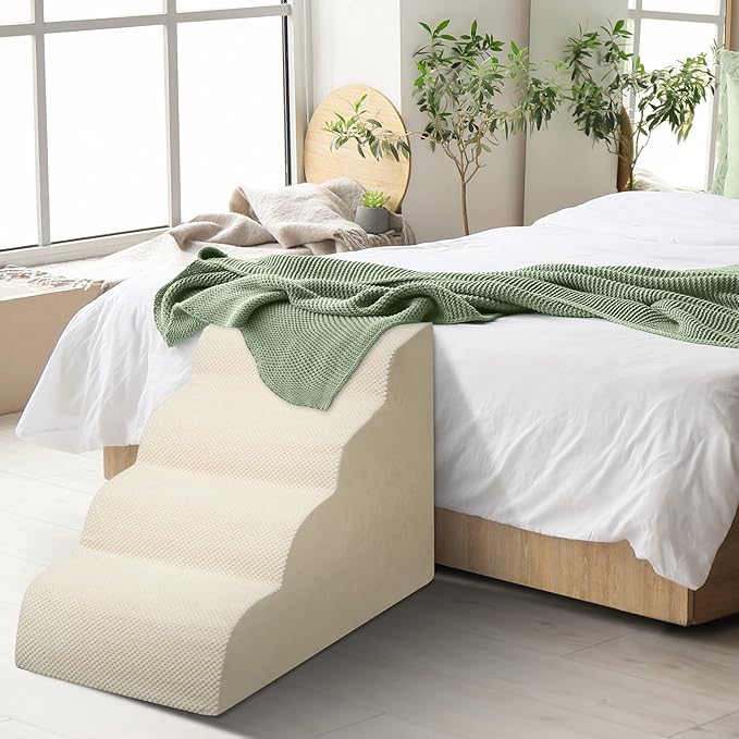 Dog Stairs for Small Dogs - High Density Foam Pet Steps, Extra Wide Dog Ramp with Non-Slip Bottom for High Beds, Couch and Sofa, Best for Dogs Injured, Older Doggy Cats