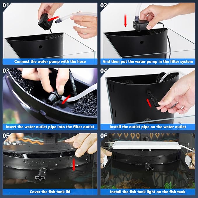 - Easy Cleaning and Disassembly: The filtration unit at the back of the fish tank is designed for easy disassembly and assembly, allowing for convenient replacement and cleaning of the filter media. You can easily customize the filter media according to your needs