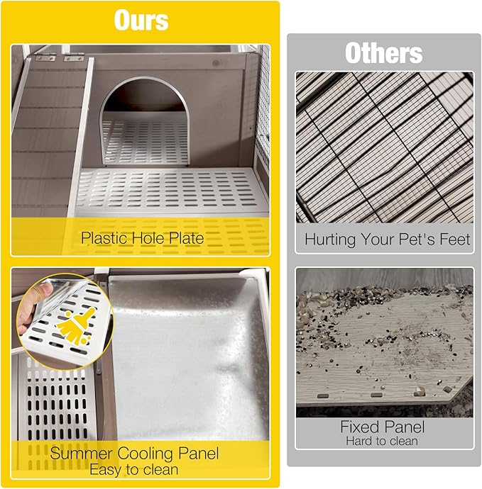 - Easy to Clean: The front and back pull-out deepening trays (with tray lock) and the openable roof also make it more convenient for you to clean the interior easily. Wire mesh that keeps pets from stepping directly on feces