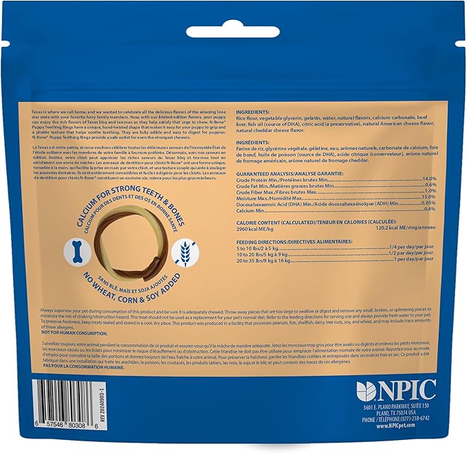 N-Bone Puppy Teething Rings Taste of Texas Queso Con Carne Flavor 3 Count