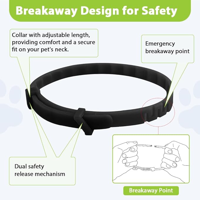 - Unique Dual Safety Release Mechanism & Emergency Breaks Away Point: This cat flea collar is equipped with a dual safety release mechanism and an emergency breaks away point, ensuring maximum safety for your pet. Even during active play or outdoor adventures, the collar stays securely in place, providing continuous protection. If your cat gets caught or pulls on the collar, it will safely break away to prevent injury, giving you peace of mind knowing your pet is safe.