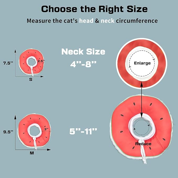 - Suit for all Size of Cats: We offer 2 sizes of cat cone, and the middle of each cone is adjustable, ensuring a definite fit for your cat. Size M fits (9.5 "x9.5 "x2.2โโ) cats with a neck circumference of 5-11 inches