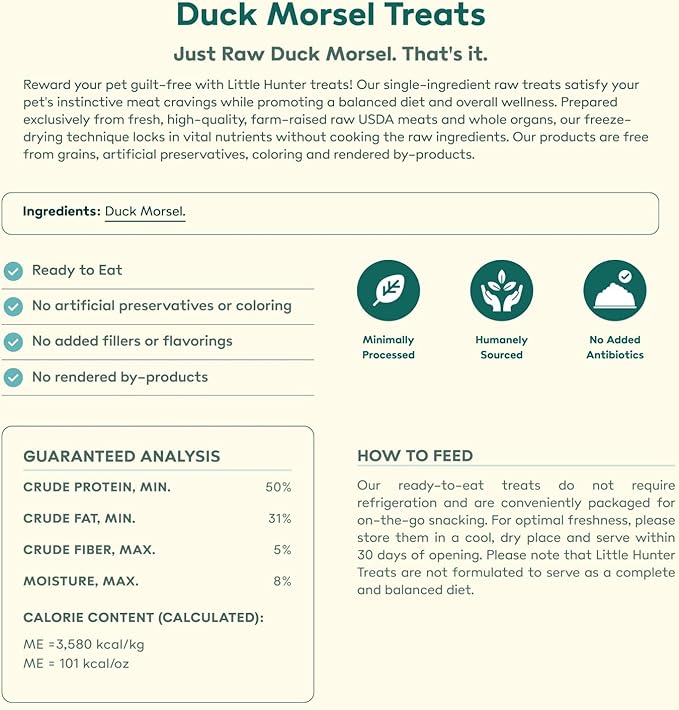 Little Hunter Freeze Dried Dog Treats - Duck Morsel - Raw Single Ingredient Duck Morsel Dog Treats for Snacks, Training, Dog Food Toppers - All Natural, Healthy Dog & Puppy Treats, 2 oz