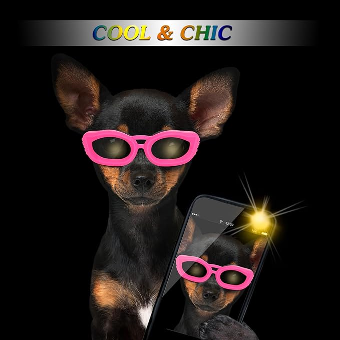 - Premium Material: With anti-scratch PC lenses, our sunglasses for dogs small breed feature excellent UV protection, not easy to break or damage, protecting your pet's eyes from strong sunshine/ wind/ snow/ water/ dust.