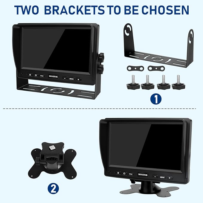 - 【7 inch LCD AHD 1080P Color Screen】 Backup camera system with 1080P high definition resolution,2 Channel View Input. It is compatible with most of the vehicles with a free power input range DC12-32V and supports with max 2 cameras.Our Parking Assistance System monitor ensures you will enjoy superior HD video experience.Camera's image can be set as mirror, non-mirror or up-side-down by OSD menu.