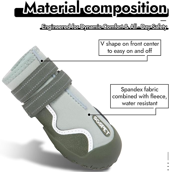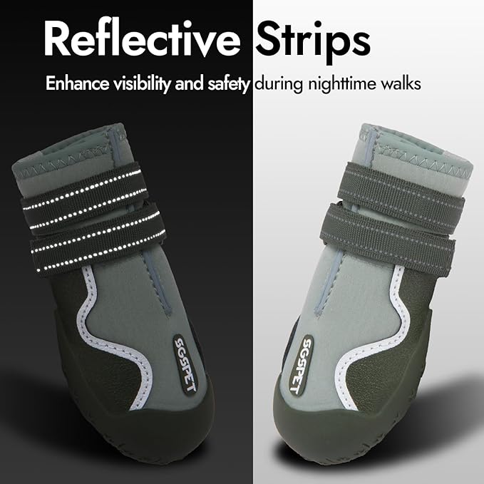 - VERSATILE PROTECTION: Engineered for Ultimate Paw Safety-Our durable dog boots are designed to tackle every season, providing reliable protection in snow, rain, and scorching hot pavement. Crafted with premium waterproof materials and enhanced with 360ยฐ reflective strips, these boots ensure your pet stays safe, comfortable, and visible in all conditions. Whether it's a winter wonderland or a summer stroll, your furry friend is ready for any adventure!