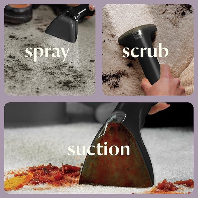 - CLEANS MORE THAN CARPET: Spray, scrub, and suction to remove embedded dirt and stains from upholstery, car interiors, pet beds, and more.