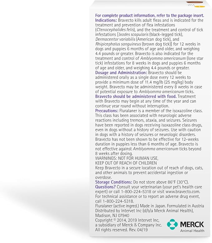 - BRAVECTO Chews last nearly 3X longer than other monthly chews