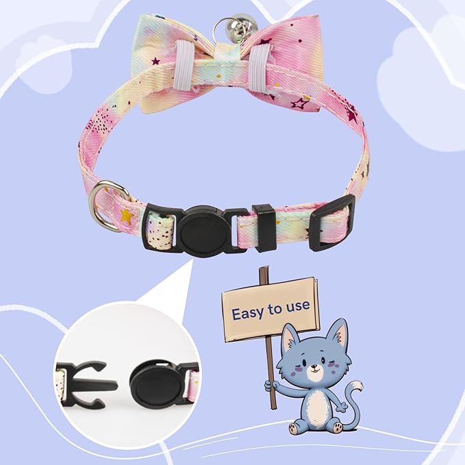 - Practical & Stylish – Featuring a cute bell to track your pet's movements and a quick-release buckle for easy on/off, this cute cat collar combines style and safety effortlessly