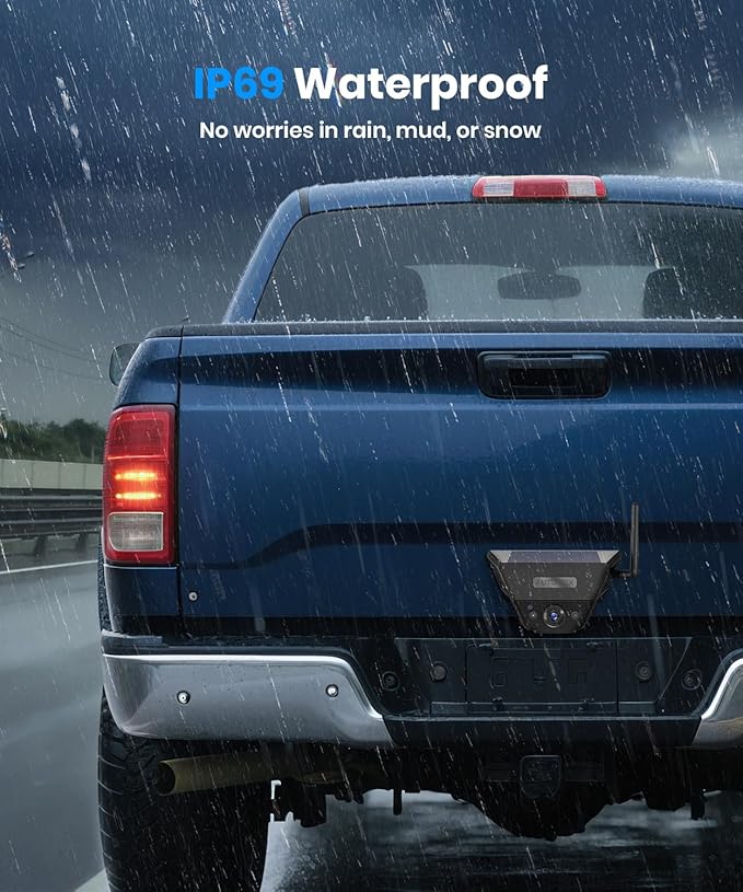- Clear 1080P HD with Bright Night Vision: Enjoy a sharp,distortion-free view in all lighting conditions.This wireless backup camera for trucks delivers 1080P HD resolution and enhanced IR night vision,letting you reverse, hitch,or park with confidence—even at night or in poorly lit campgrounds