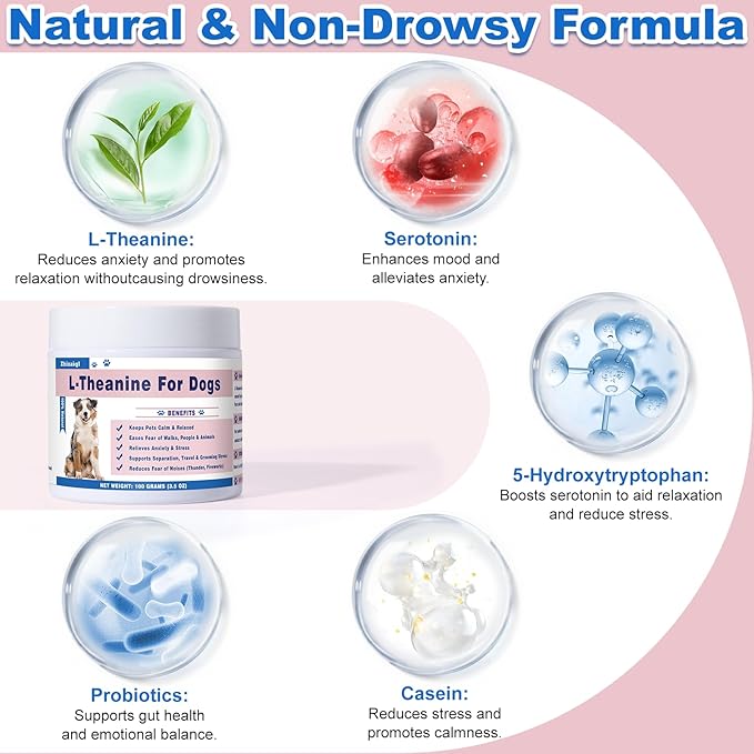 - Vet-Inspired, Science-Backed: Designed based on clinical research showing L-Theanine helps reduce nervous behaviors. A safe, non-drug option for pets with mild to moderate anxiety