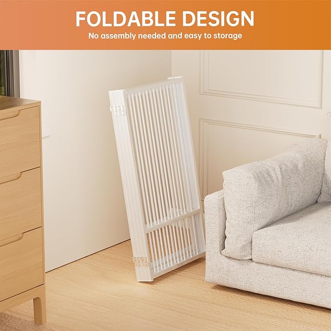 - [Versatile Sizes]: Our pet dog gate is available in 24-inch and 32-inch heights, perfect for puppies, small and medium dogs pets. Multi-choice of 2 panles, 4 panles and 6 panles, suitable for stairs, kitchens, bedroom doors, corridors and other indoor and outdoor forbidden areas.