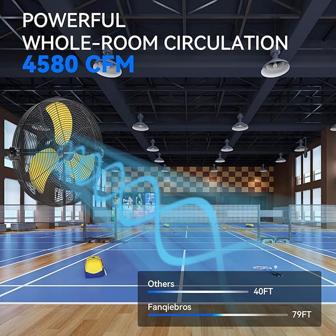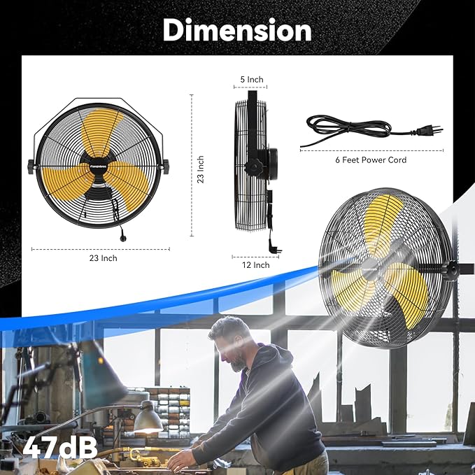- ๐๐จ๐ฐ-๐๐จ๐ข๐ฌ๐ ๐๐๐ฌ๐ข๐ ๐ง - The heavy-duty wall fan operates at a high speed of 4580 CFM with a noise level of only 60dB, which is lower than the industry standard, creating a quieter gathering or working environment