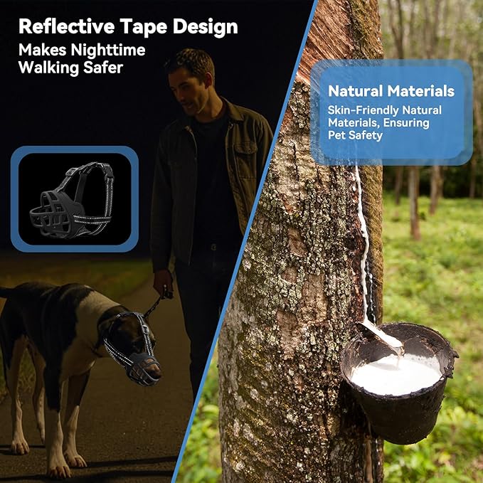 - Eco-Friendly Material for Safety and Durability: Our Dog Muzzle for Large Dogs is Crafted from Non-toxic, Environmentally Friendly TPR Silicone. This Lightweight yet Durable Material Is Odorless, Soft to the Touch, And Sturdy Enough to Resist Deformation, Ensuring Long-Lasting Use While Prioritizing Your Petโs Safety
