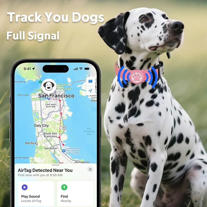- Waterproof Airtag Holder : Adjustable dog collar with an IP68 waterproof AirTag Holder, consisting of two silicone holder that combine to protect AirTag from pet scratches, water, dust and other damages