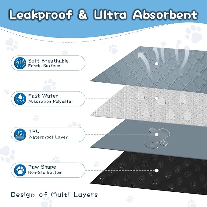 - 【Premium Materials and Multi-Layer Design】 Guinea pig urine pad soft flannel surface, comfortable guinea pig feet; Absorbent cotton layer, fast absorbent; Layer of waterproof TPU to prevent liquid slip out, increasing permeability; Upgrade the bottom dense particle non-slip silicone, Non-slip and non-shift, so that your small animals always stay happy.